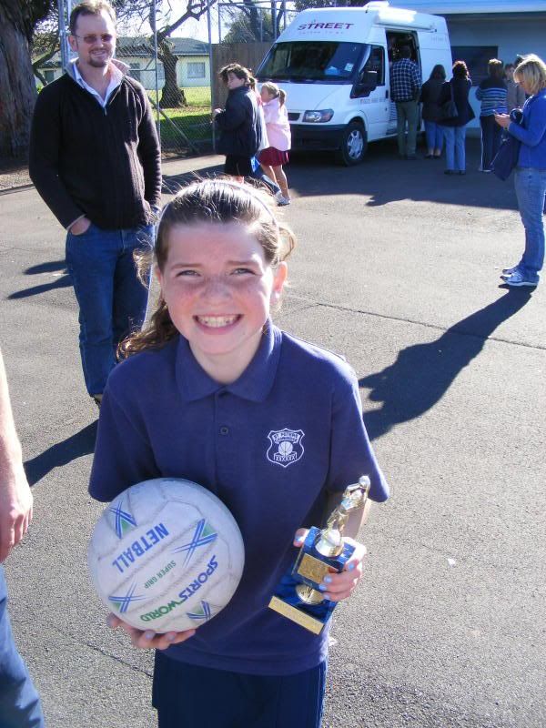 Second quarter followed the same pattern, and the third was totally one way traffic with the opposition only having one failed effort. Lou's personal score was up to 13 at this stage - we gave her a target of 20, joking of course, as everybody was coming up to us saying what a fantastic game she was having. She surpassed that score at the end of the game, scoring 22!! Naturally there was only one name for player of the day, but the rest of the team were fantastic. We had our centre out of action through illness and the regular goal attack was away on holiday. Louisa was the end result of great fast team play, but her positional play, defensive work and attacking flair, not to mention a bucketfull of goals, merited the award. We are bursting with pride today.... well done Louisa